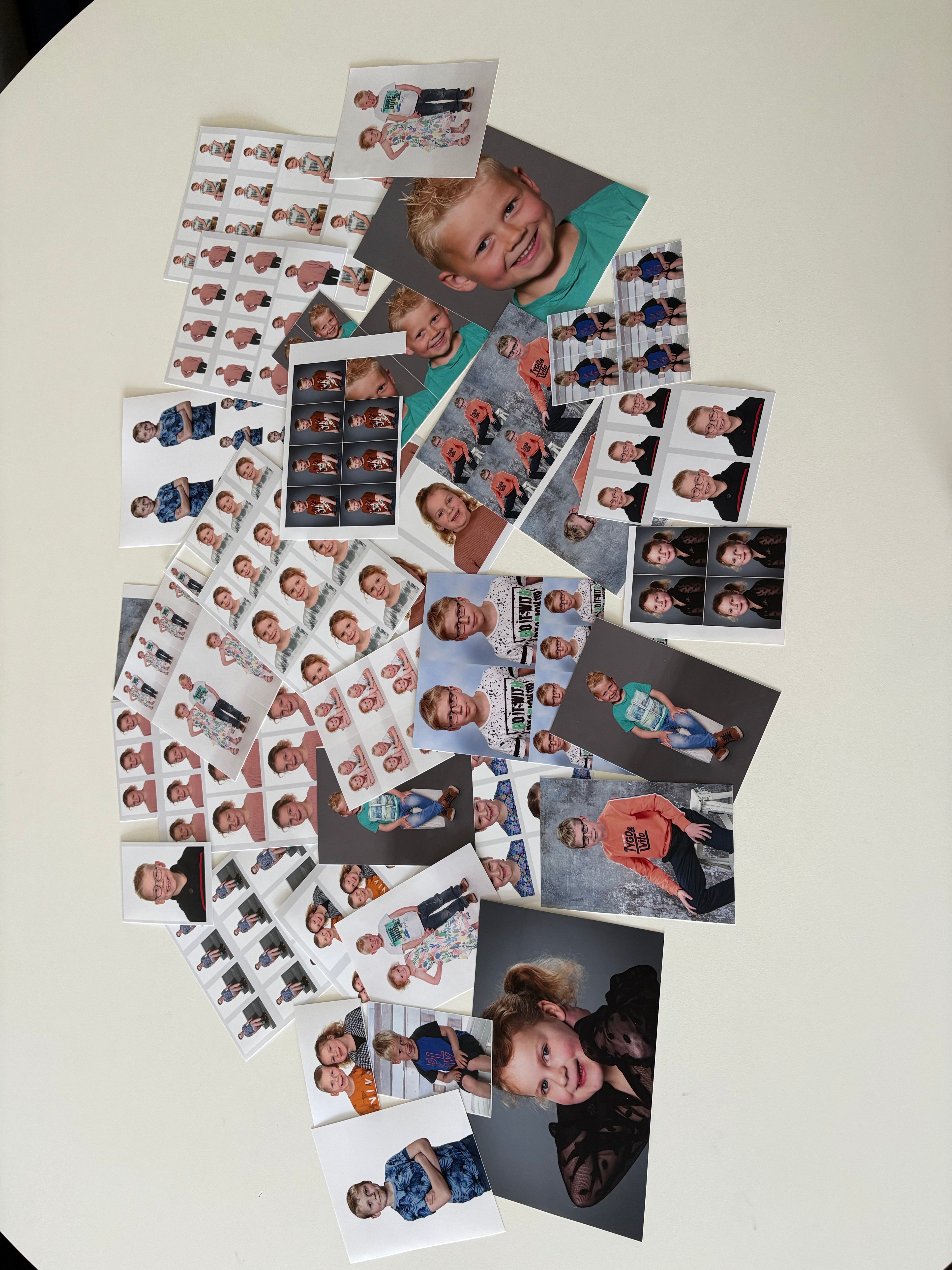Heeft je kind al een aantal schooljaren erop zitten, maar heb je nog wel de portretfoto's of klassenfoto's, dan kan je deze alsnog inplakken.